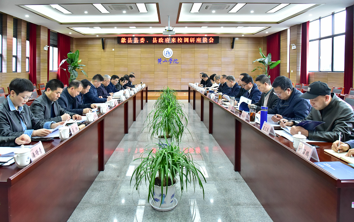 4月3日上午,歙县县委书记熊志伟,县长王奇勇,县委常委、县经开区党工委书记、管委会主任詹凯一行来校交流。校党委书记李铁范出席并主持座谈会,校党委副书记刘力,校党委委员、副院长张小明,学校相关职能部门、二级学院负责人参加座谈。